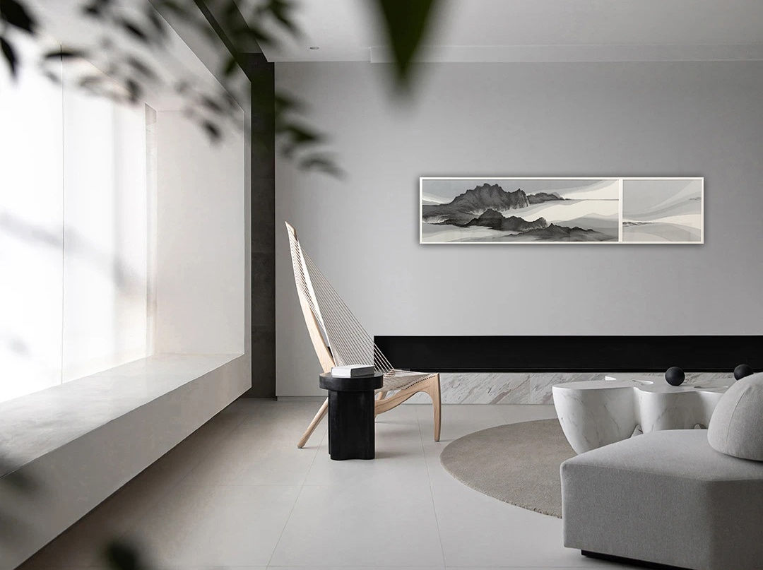 "Painting on-site is a practice shared by many eastern and western masters, from shi-tao to claude monet, resulting in an expansive abstract. much of my work is painted in this way, as it enables me to capture the ambience of the environment and nature- through the deep knowledge of the space, the inner beauty is ingrained in the artwork. i have a strong connection with the sense of space that is often emphasised in ink painting. drawing from my studies under ink master hung hoi and experience as a designer, every layer in my paintings captures changes in light over time, recording the state of mind and emotions at that moment. it is a time lapse with mono color scheme. i believe that chinese painting rarely employs such contemporary ideas, and i'm excited to share my unique vision through my work".