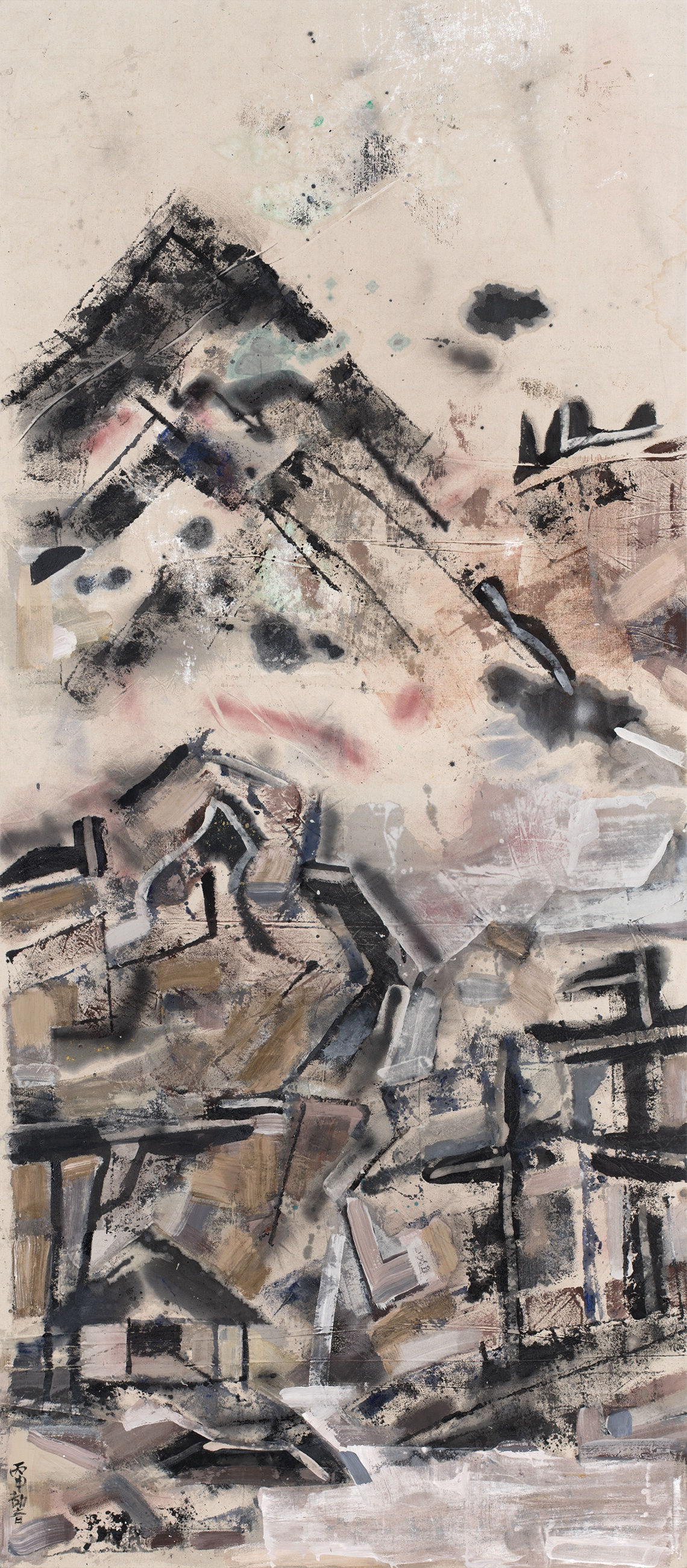 The aesthetics of Wang Jieyin’s painting reveals the significance of Chinese painting in the contemporary era. It is finding an almost impossible fusion between traditional Chinese imagery and Western abstract, between abstract composition and mist in nature, between memories of quaint images and cursive blurriness, between improvisational happenstance and dignified elegance, carefree play and rhythmic construction, and between a sense of hardship and childlike primitiveness, therefore creating a quaint and forceful state of life.