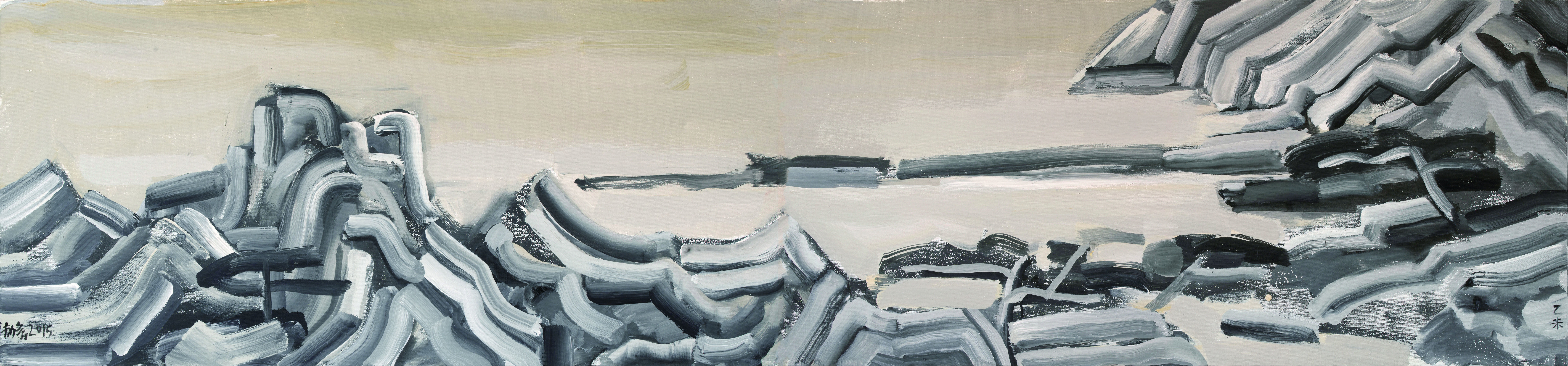 Wang Jieyin, Long Beach, Acrylic on canvas, 70 cm x 150 cm x 2, 2015
