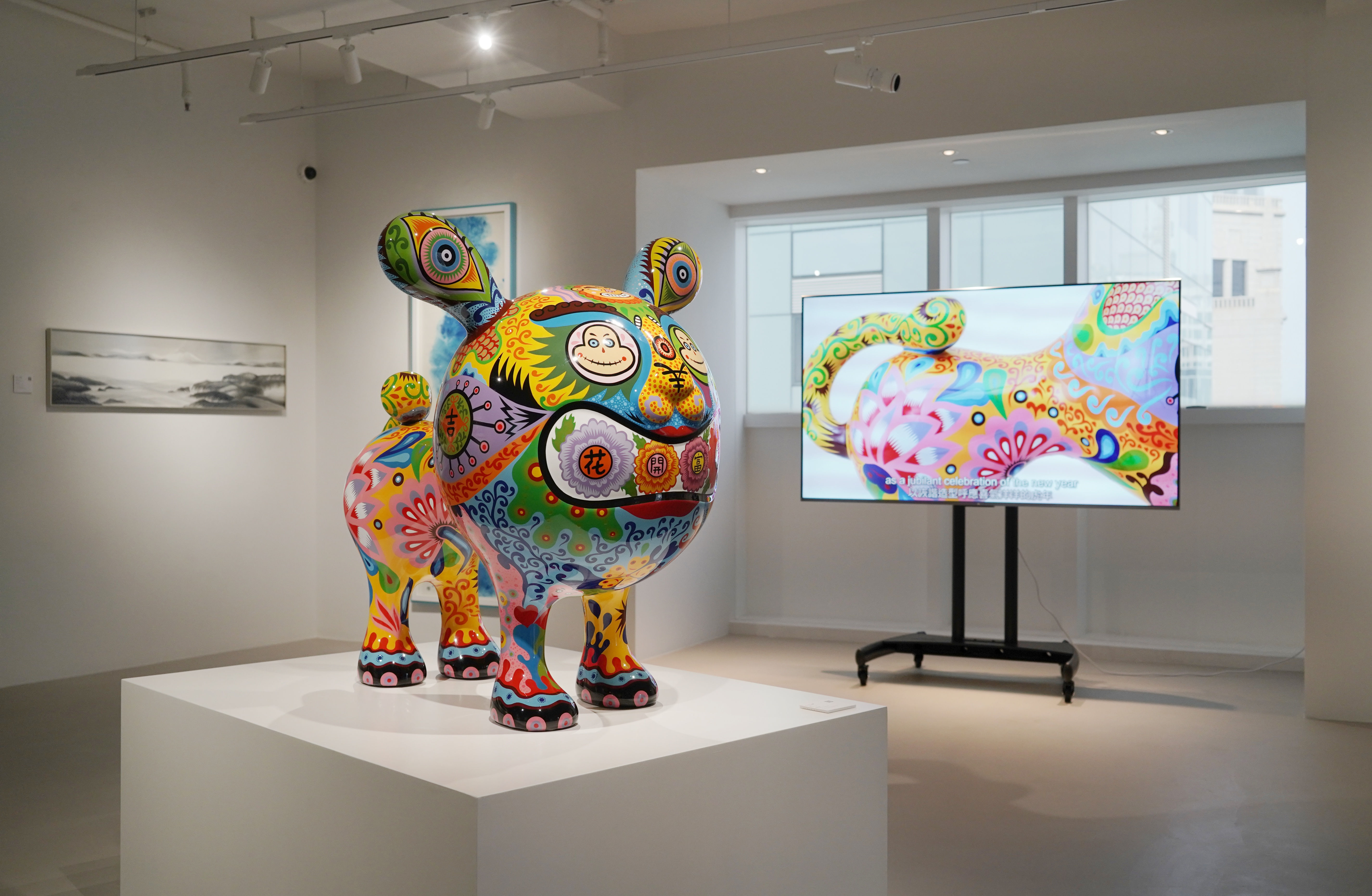Taiwanese contemporary artist Hung Yi takes fascinating elements from traditional symbols to create his works. He is inspired by animals and creates sculptures to convey the spirit of nature. Rich Tiger represents the year of the Tiger. The homonym of "Fu" represents auspiciousness. The artist uses the image of the tiger as a jubilant celebration of the new year and presents it in an exaggerated Pop style. From drawing two-dimensional objects and symbols of nature, such as green leaves and flowers, onto three-dimensional surfaces of animal sculptures, and also featuring auspicious Chinese words, these various cultural elements seem to be disorderly but orderly, showing the artist’s creative concept of “secular” but "fresh”.