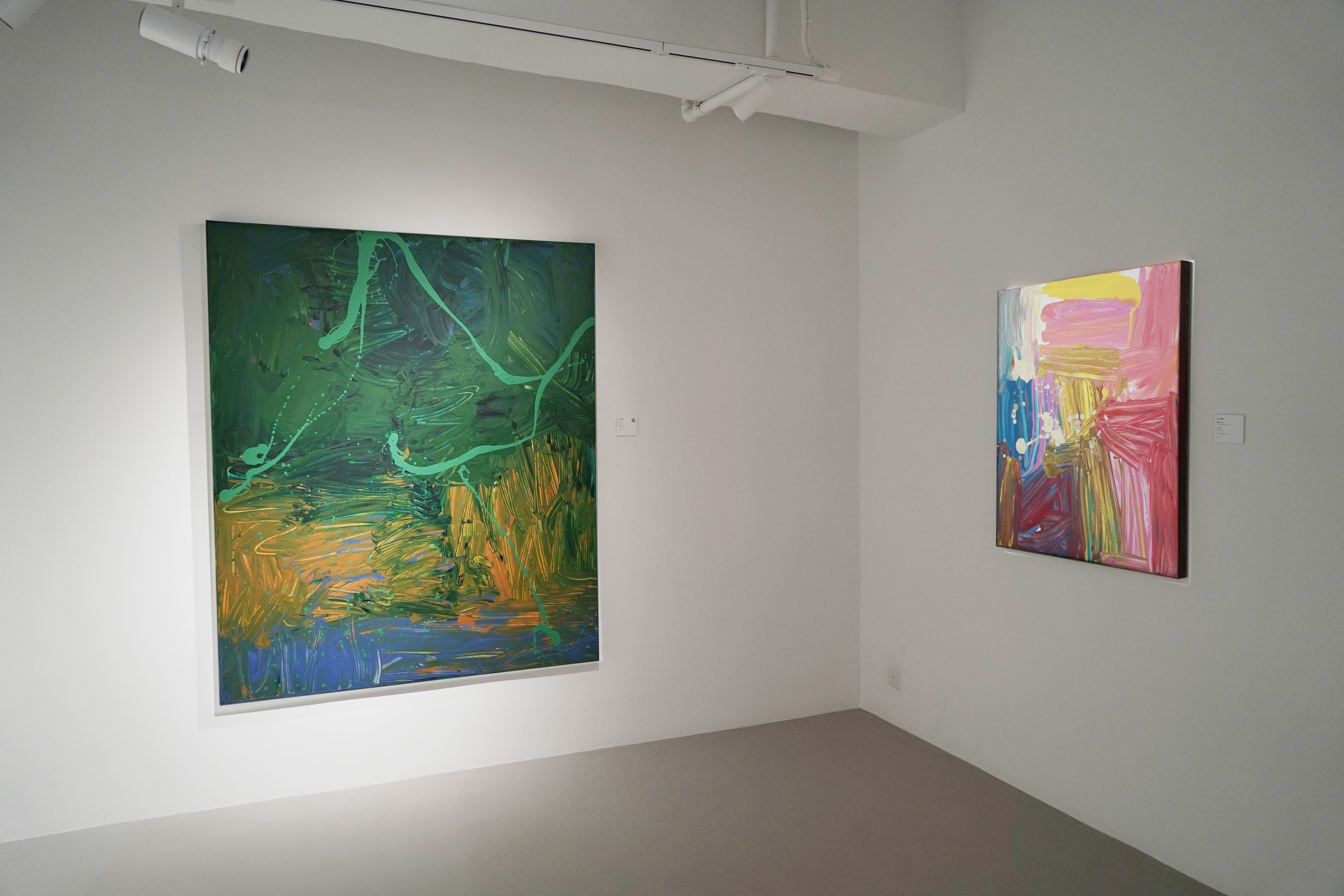 Chinese contemporary artist Li Lei expresses the ontological questions of life within abstract paintings. Mad Water - 20 illustrates the tension between the inner mind and the core concept of a pure and tolerant mindset, that is embodied in the essence of “water” in the Chinese philosophies of Confucianism, Buddhism, and Taoism. The painting is created layer after layer with expansive fields of vivid colours of green, yellow and blue, that articulate the virtue and vitality in all lives nurtured by “water”, and embraces poetic and Ch’an sentiment. Li’s creative style and use of splattering techniques is borrowed from Western abstract expressionism and fused with the undulating lines inspired from Chinese calligraphy. Together they achieve an inherent intuition that brings poetry and musicality in the visual.
