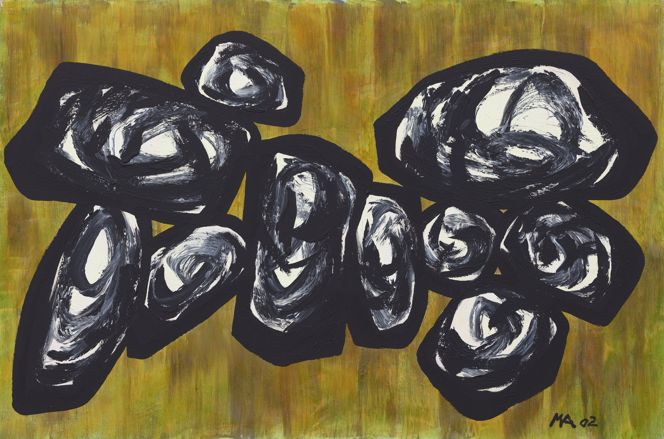 Ma: In around 1982, I started painting stones in Beijing using oil paint, creating surrealistic-representations of stones. After that, I took a break from the series and began painting abstract ink artworks. It wasn't until after spending two years in the hospital and undergoing eight years of rehabilitation that I returned to painting stones.