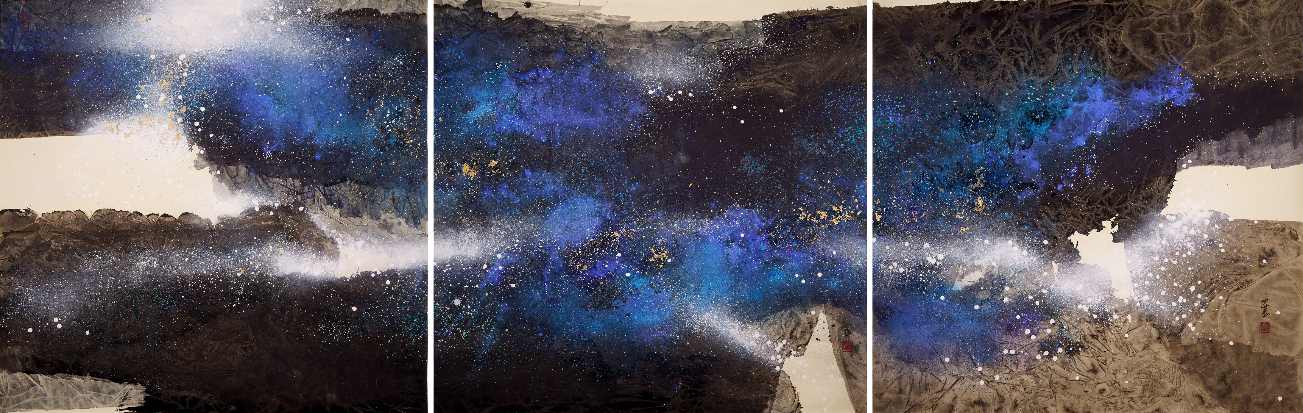 Raymond Fung, Breathing (23), Ink and colour on paper (Triptych), 90 x 270cm