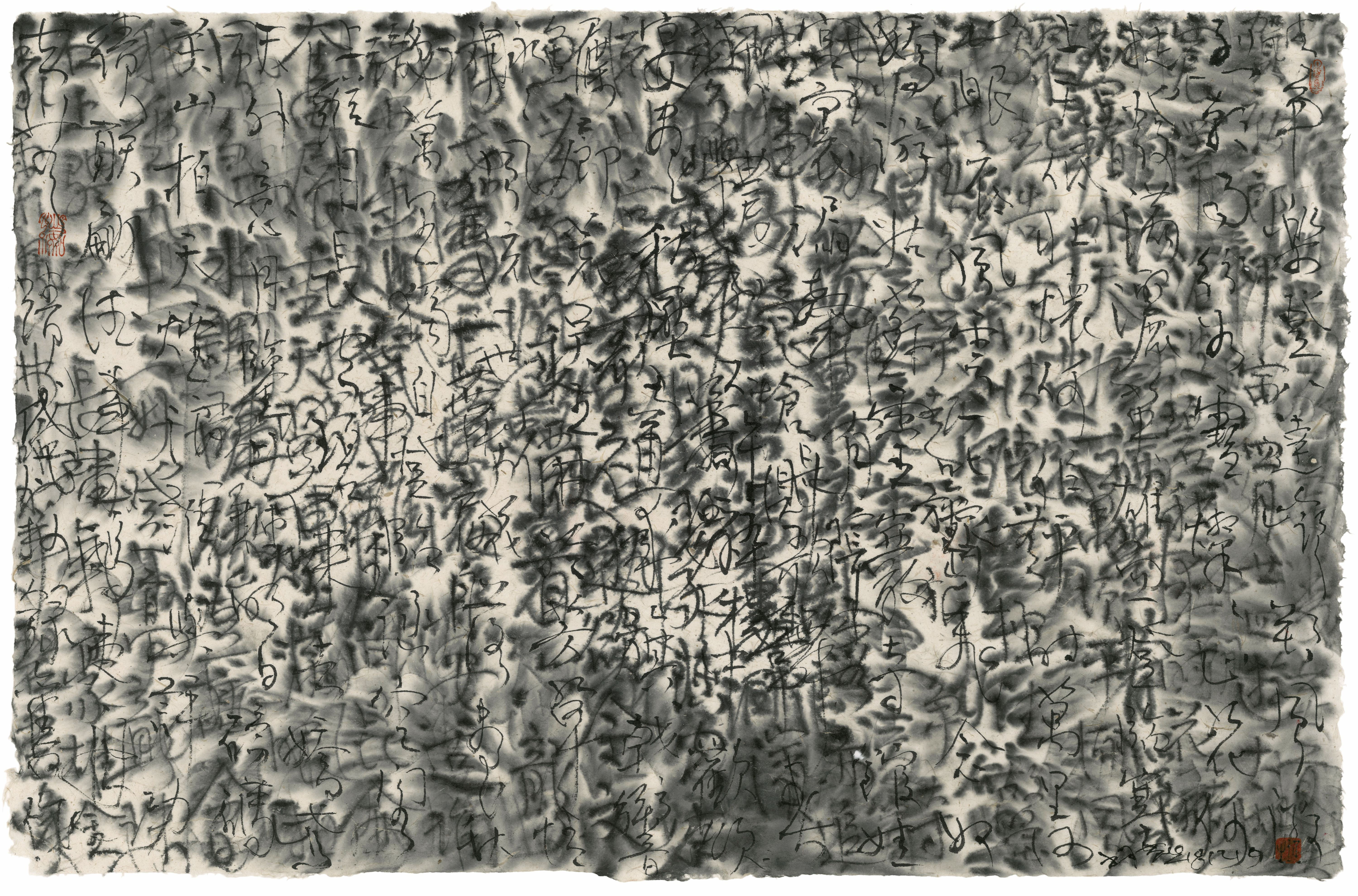 Over the years, in his expansive ink practice, Wang’s pursuit of line has departed from a more classical mode in his earlier works to a more experimental abstraction that take various forms – from dense clusters of curvaceous lines lightly swooping in and out to express a sense of uninterrupted movement in space, through to more horizontal modes of thicker lines in his more recent works that are softly textured yet rigorous and bold. Though brush and ink are his principal medium, he also works with textiles, resin, newspaper and barbed wire, expanding his visual language in sustained bodies of work that contain ideas of vision, trace, and metaphor as central threads, each series visually evoking an undefinable visceral sense of being and aesthetic experience.