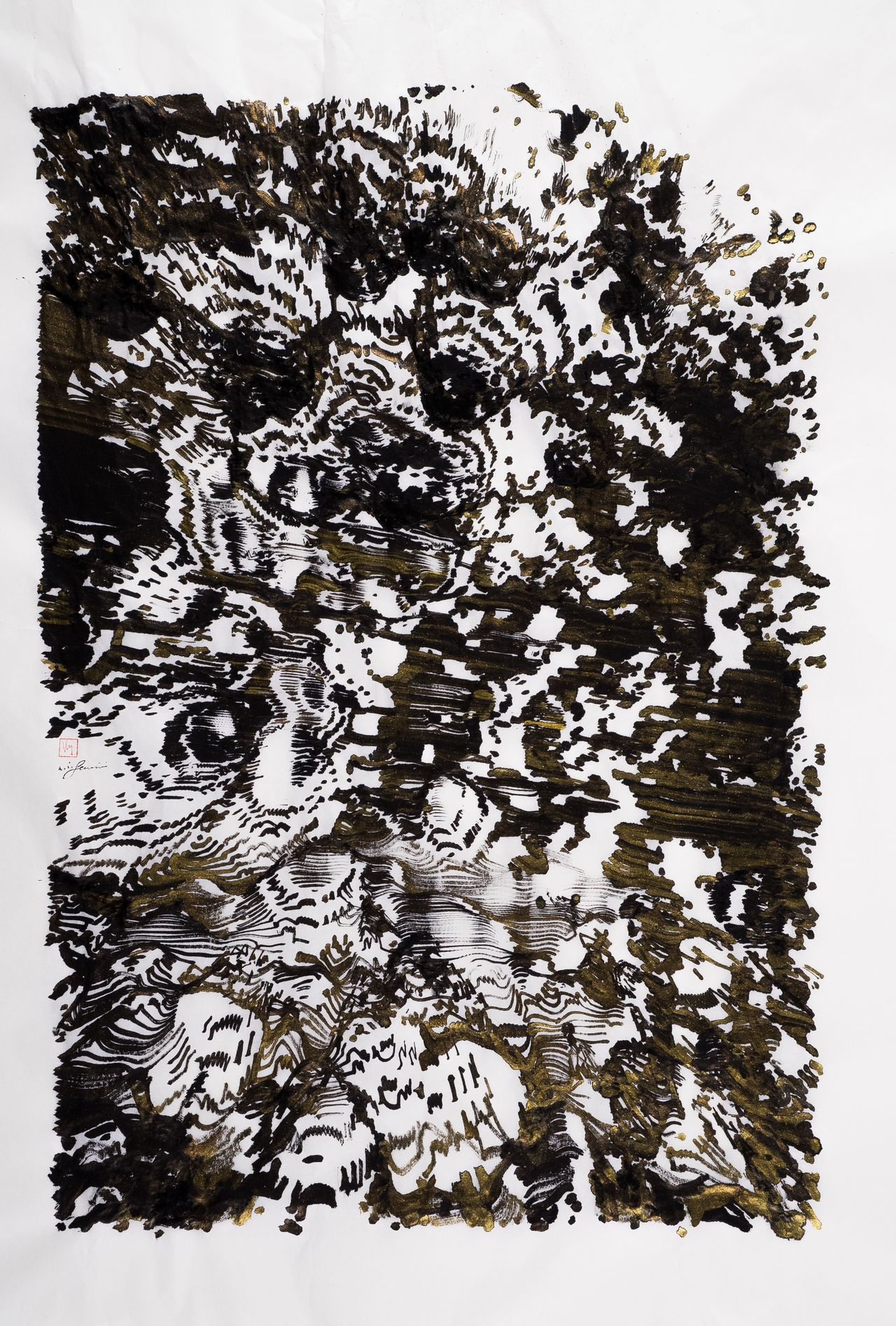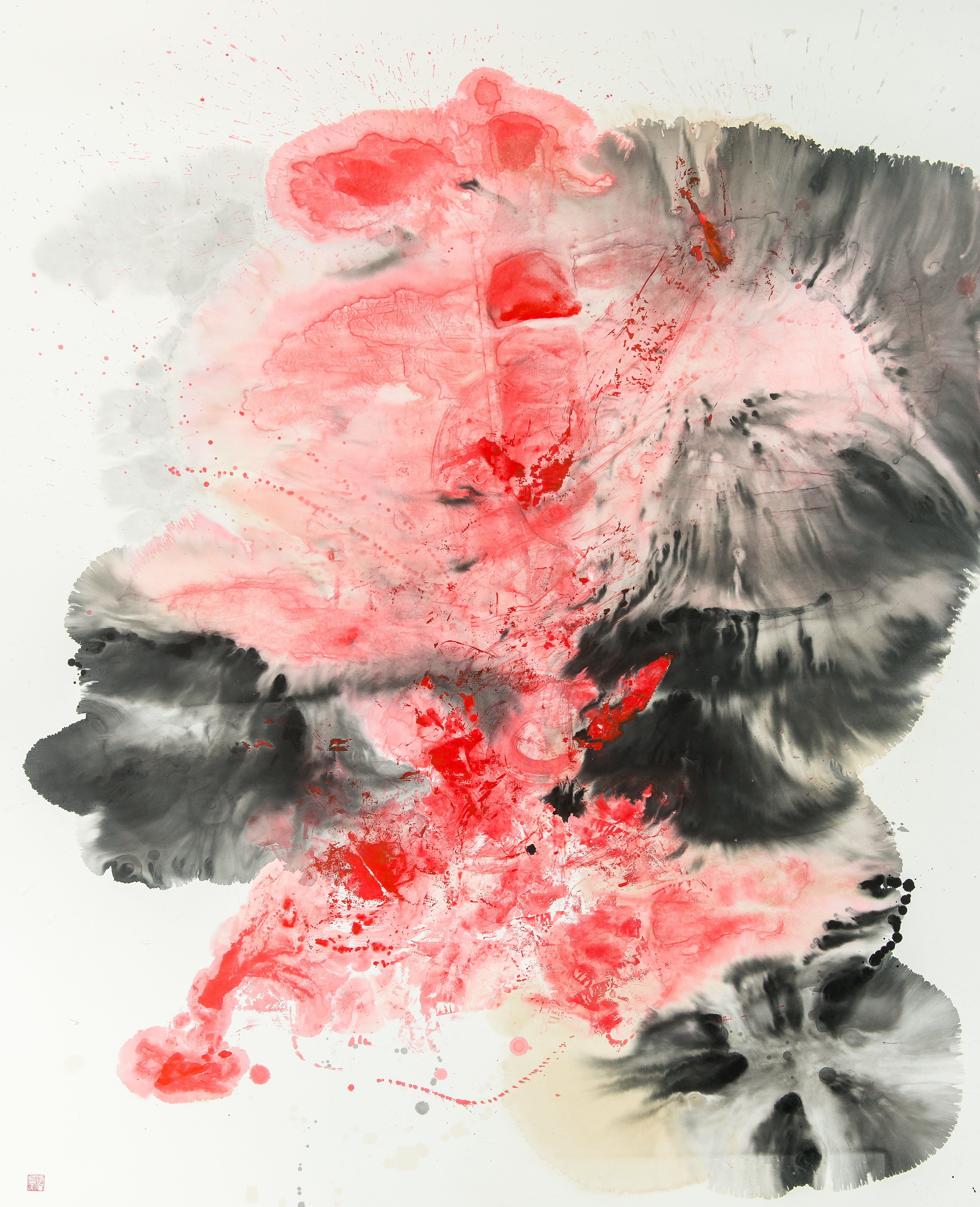 Chloe Ho, Ink Eruption, 2017, Chinese ink, acrylic and coffee on rice paper, 159 x 131cm